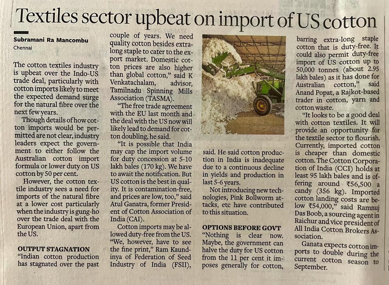 Textiles sector upbeat on import US cotton – source ICF Data Base Post date February 10, 2026 ← ICAL – Monthly Arrival Report upto January – 2026 source Indian Cotton Association Limited